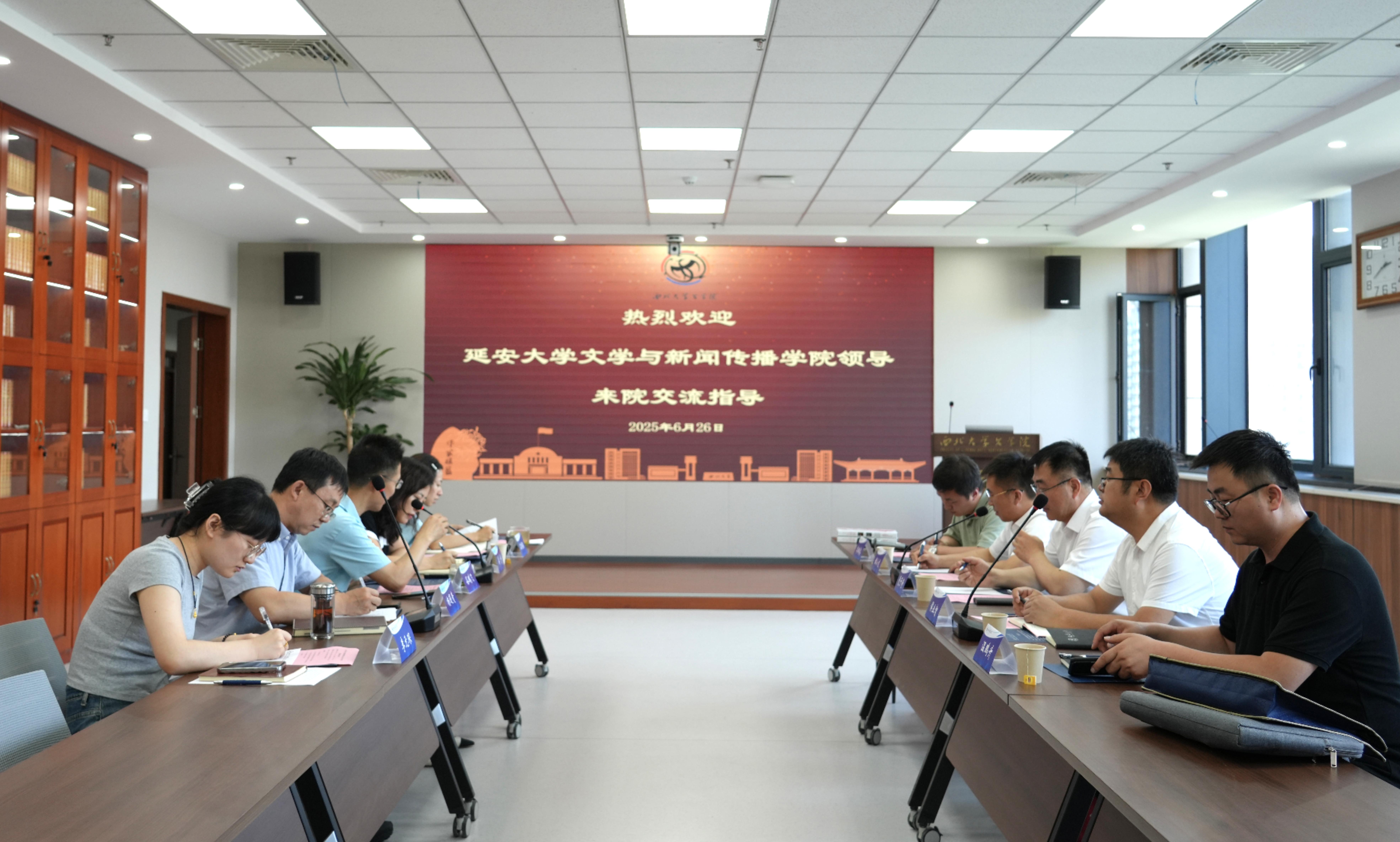 6月26日,延安大学文学与新闻传播学院院长党子奇等一行5人莅临我院调研交流,js333国际线路院长谷鹏飞,党委书记姜宇、副院长杨遇青、团委书记石琬璐、研究生秘书李元琛参加了座谈。会议由谷鹏飞院长主持。