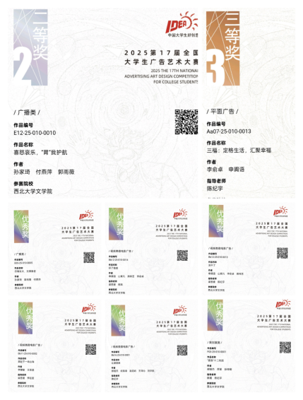 近日,2025年全国大学生广告艺术大赛(以下简称“大广赛”)国赛获奖名单正式公布。作为西北大学“推动计划”A类赛事,大广赛是我国权威认可、影响力广泛的国家级艺术类竞赛。本次赛事中,js333国际线路学子不负众望,斩获全国二等奖1项、三等奖1项、优秀奖6项,总计8项全国级奖项,创历年参赛最佳成绩。此前,在第17届大广赛陕西赛区评选中,我院师生已斩获19项省级奖项,充分展现了js333国际线路在创意人才培养方面的扎实实力。
