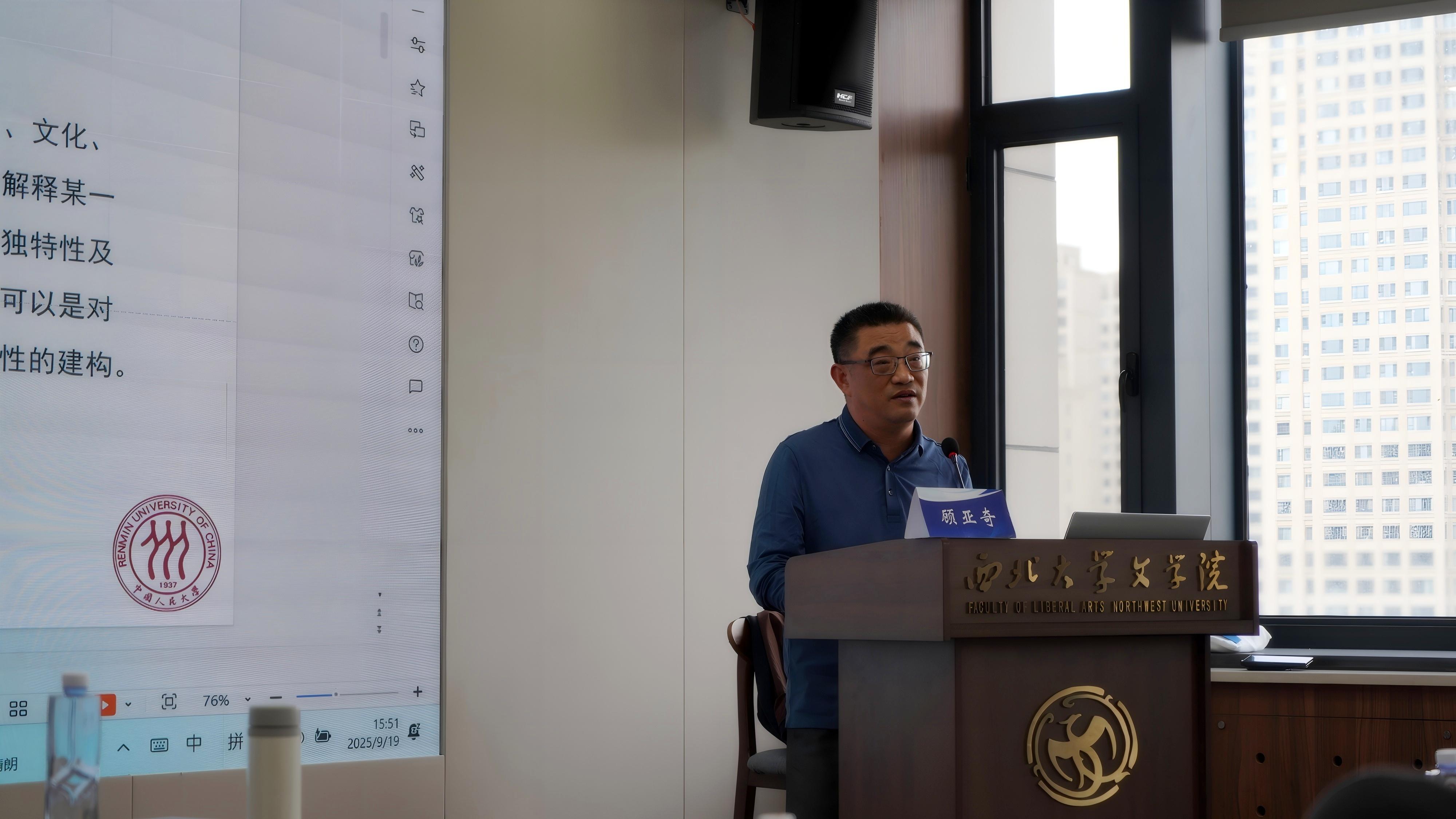 9月19日下午,中国人民大学“吴玉章”特聘教授、博士生导师、艺术学院副院长顾亚奇教授做客我校“侯外庐学术讲座”第448讲,为师生带来了题为“‘文明叙事’的视听表达与传播”的专题报告。讲座由张阿利教授主持,js333国际线路六十余名师生齐聚一堂,共享学术盛宴。